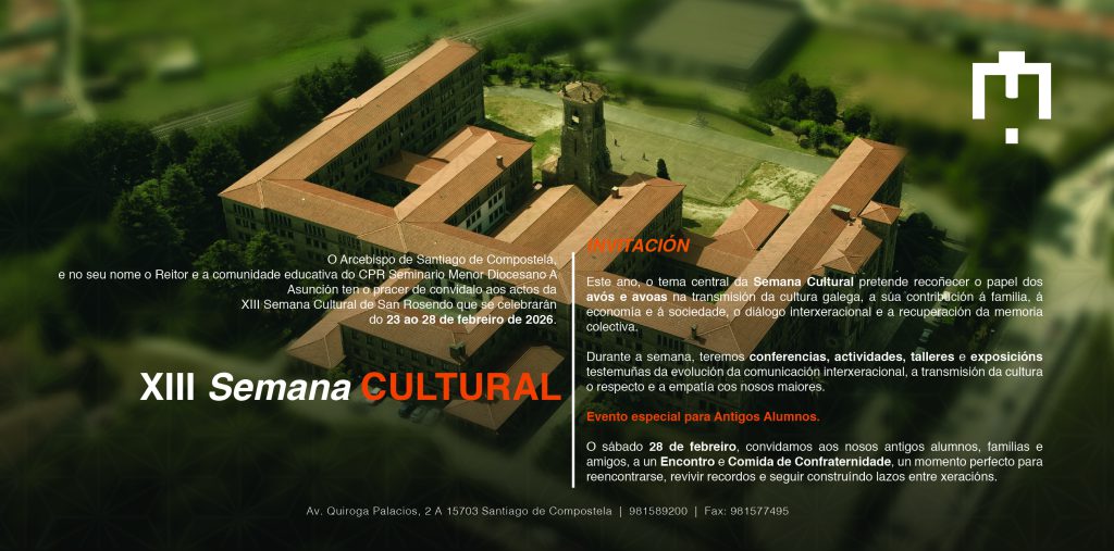 Como todos os anos, e dentro dos actos programados da XIII Semana Cultural, celébrase o encontro da Asociación de Antigos Alumnos e Amigos do Seminario Menor (SEMDA). Este acto está aberto a todos os antigos alumnos, ao persoal docente e non docente, así como a todas aquelas persoas amigas do noso Seminario Menor da Asunción que, dalgún xeito, forman parte da súa historia e son memoria viva deste centro.